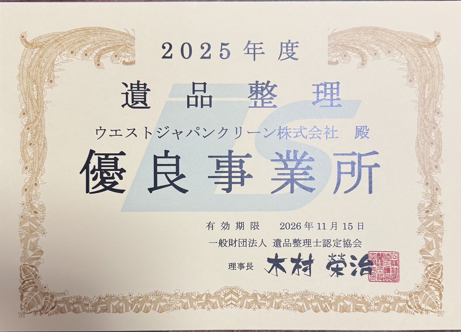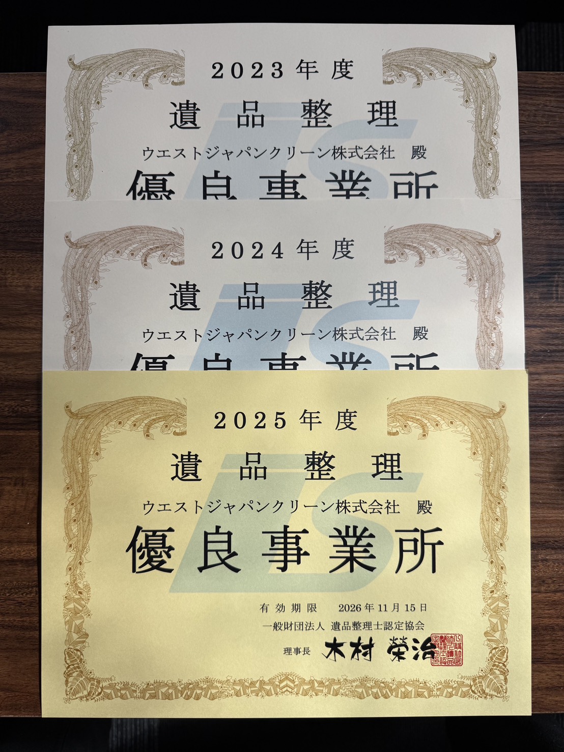 2024年度【遺品整理 優良事業所】認定を頂戴しました。
